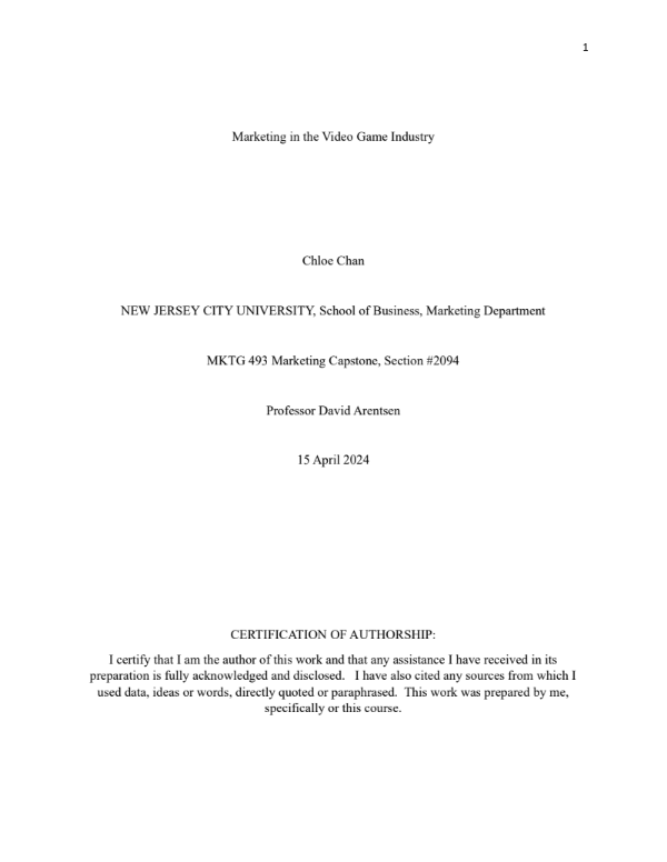 My capstone project, Marketing in the Video Game Industry.